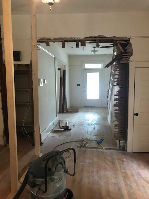 Even though Elise had never done much in the way of remodeling, her PaPa, my dad, came and helped her start the gutting process. He’d worked on lots of remodeling projects in the homes we’d lived in and had the skills to teach her how to use a sledgehammer and pry trim off the walls.